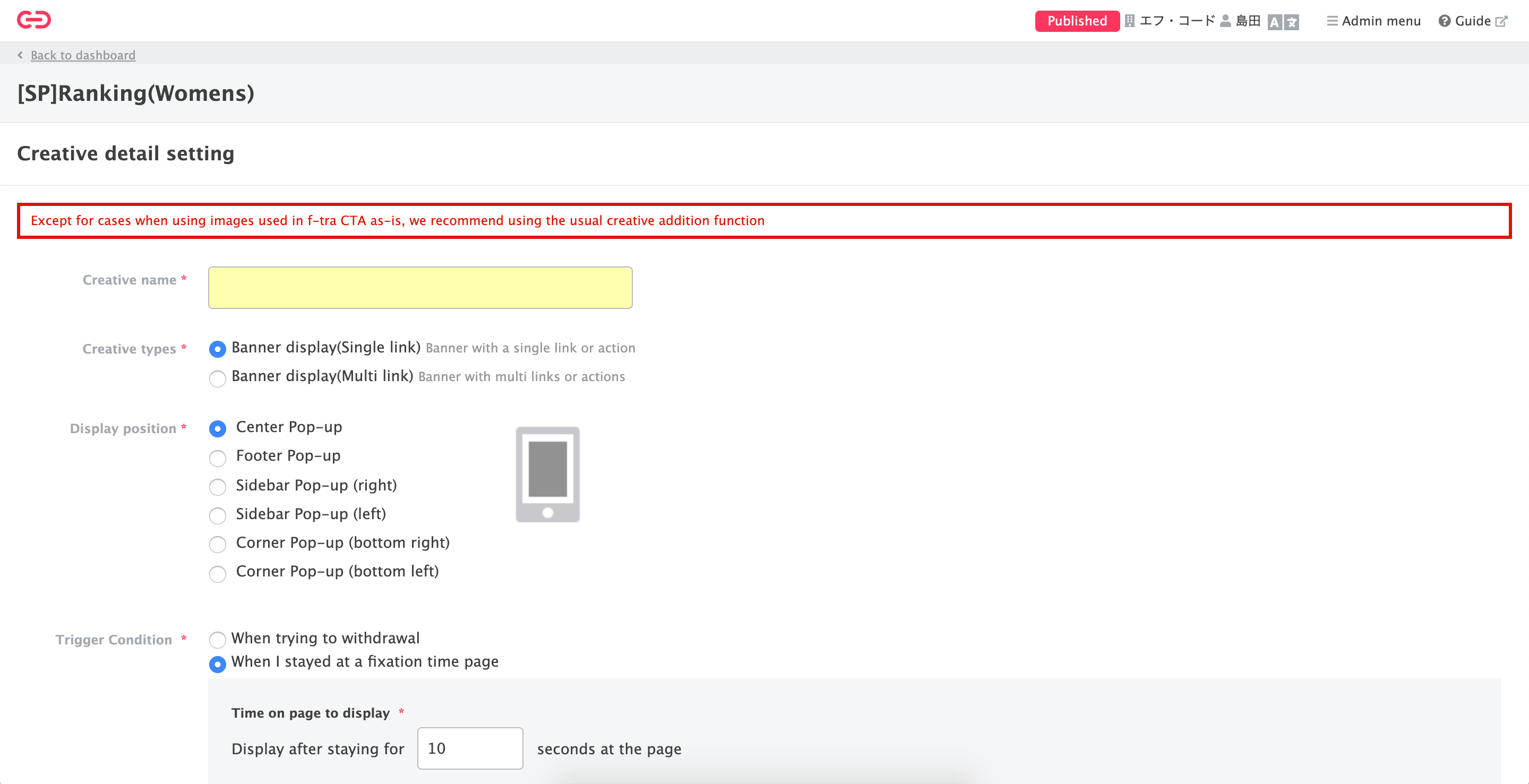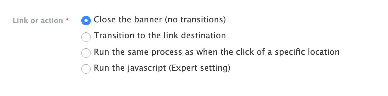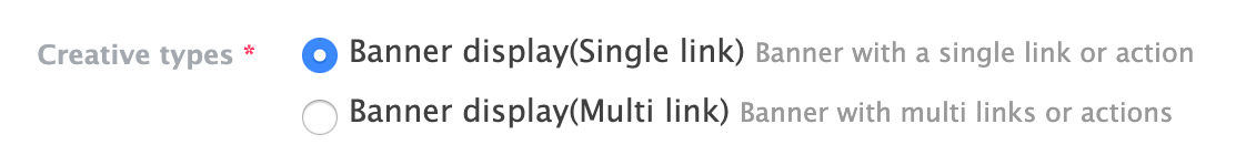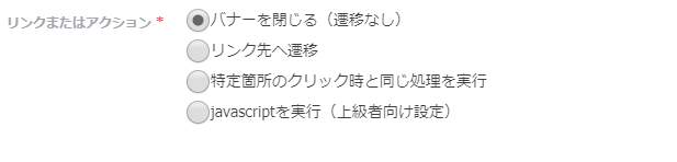 ※ Select the click destination or action to execute when the creative type “Banner display” is specified.